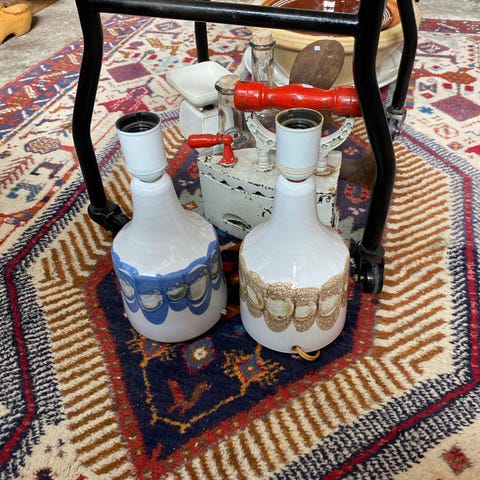 Flot Palshus lampepar med brun glasur. Renoveret med ens fatninger og nye ledninger. God stand uden skader. Det er store lamper med en højde på ca 45 cm.