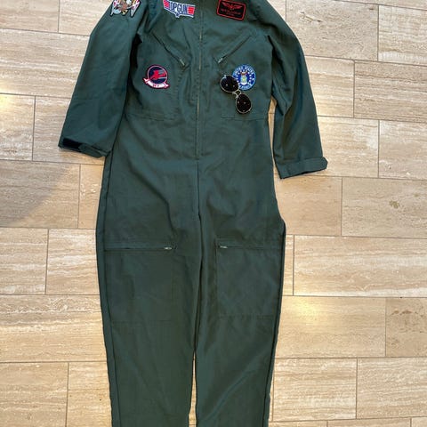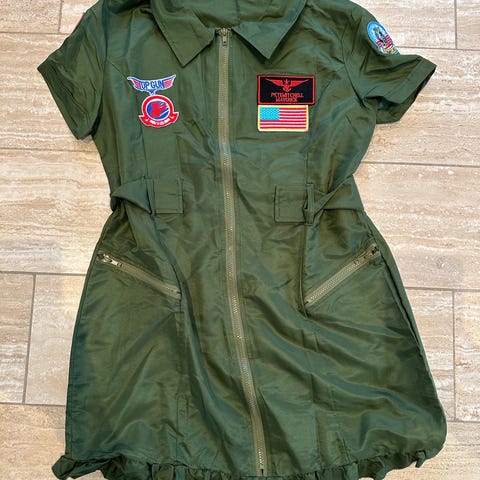 Grøn Top Gun flyver kjole kostume med lynlås hele vejen igennem foran.