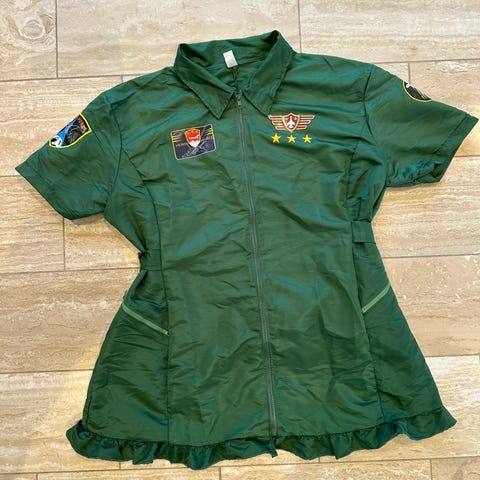 Top Gun kostume. Grøn kortærmet kjole med lynlås foran.
