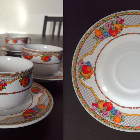 Smuk kop med et flot motiv af frugt og blomster. Flotte levende farver.
