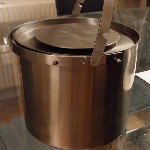Stelton retro isspand og askebæger i rustfrit stål med tang