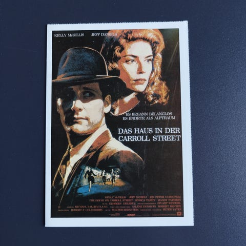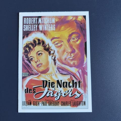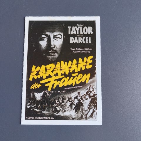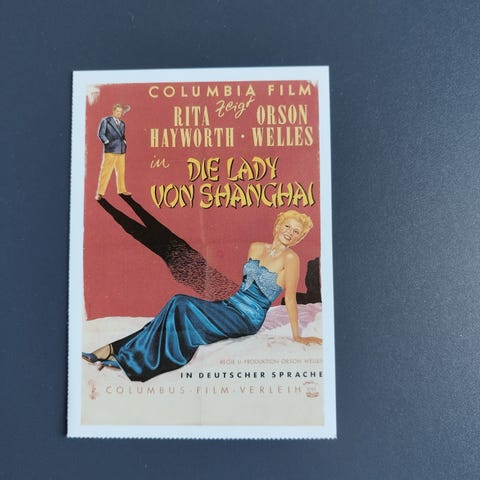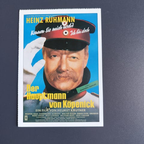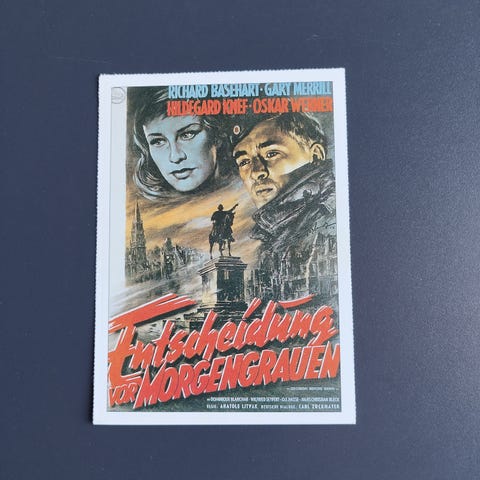 Interessant Tysk Cinema reklamekort med komplet info om filmen, alt fra originaltitlen, dato for første visning, medvirkende skuespillere, synopsis, lidt baggrundshistorie om filmens tilblivelse, info om instruktøren og hovedrolleindhaveren. . Tysk tekst.