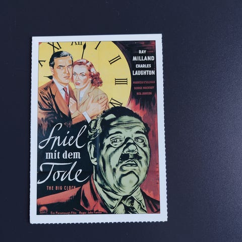 Interessant Tysk Cinema reklamekort med komplet info om filmen, alt fra originaltitlen, dato for første visning, medvirkende skuespillere, synopsis, lidt baggrundshistorie om filmens tilblivelse, info om instruktøren og hovedrolleindhaveren. . Tysk tekst.