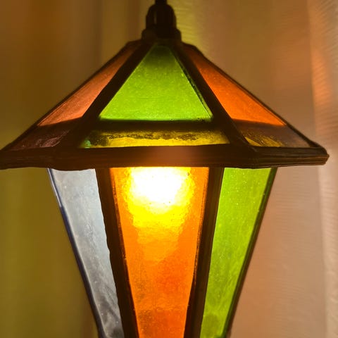 Super fed retro lampe til sommerhuset/kolonihaven. Blyindfattet med masser af farver. Normal e27 fatning. Klar til montering. Skal afhentes på Amager. Sender ikke
