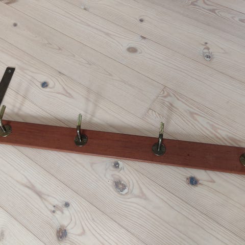 Sælger arvesølvet i form af teak knagerækker af massivt teaktræ med messing kroge som har ligget på en gård i en menneskealder.