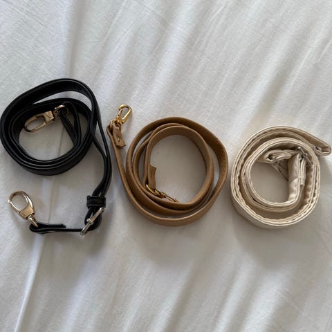 Tilbehør, Taskeremme, 2 taskeremme 40 og 45mm bredde, justerbar længde. Kr 50,- per stk. (2399)