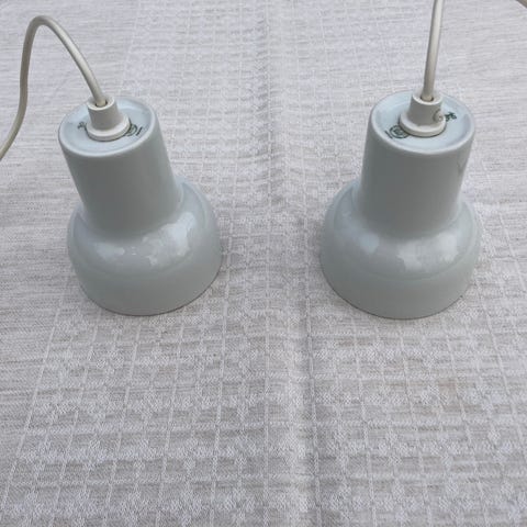 Porcelouis Porcelight. To pendler H 15.5 cm og Ø 14 cm sælges som sæt. Super flot stand/ som ubrugte. Bing og Grøndahl.