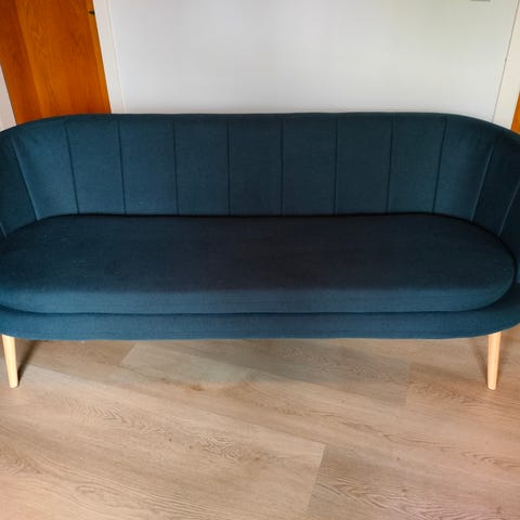 Mørkeblå sofa fra Jysk. Orignalprisen er 2299. Link til artiklen på Jysks hjemmeside: https://jysk.dk/stue/sofaer/sofa-gistrup-2-pers-moerkeblaat-stof. Jeg mener selv at den er i super fin stand, men eventuel køber skal være velkommen til at inspicere varen.