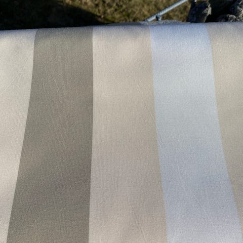 Stribet stof i metervare med brede striber i rød, grå og hvid. Stoffet egner sig til fx hynder, puder, dug eller andre syprojekter. Velegnet til projekter, hvor der ønskes et enkelt, stribet mønster i afdæmpede farver.