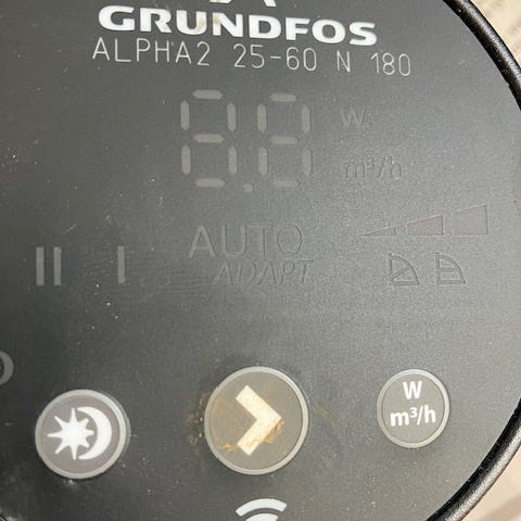 Grundfos pumpe Alpha2 go 25-60 180. Ny montering - kun 4 mdr. brug. Vejl. pris 3.500 kr. Sælges for 1.800 kr.