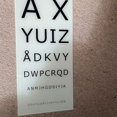 Skilte, Synstest, 1 stk Læge Glasplade Synstest Højde 56 cm Bredde 26 cm