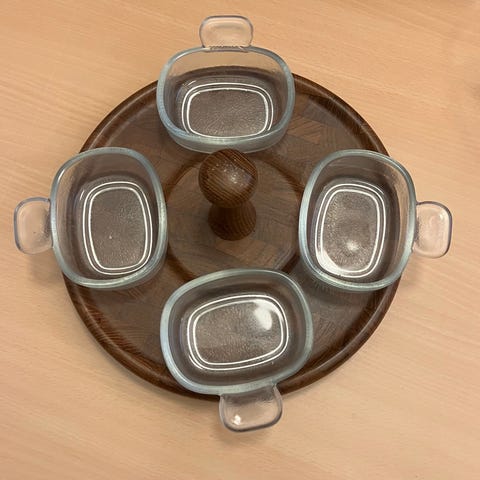 Digsmed Danmark ovalt opdelt teaktræsfad. Samlet pris 185Kan sendes for købers regning 45kr (4)