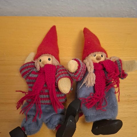 Julefigurer nisser stofdukker rød og grøn