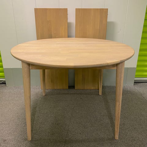 Rundt egetræs spisebord med udtræk