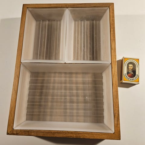 Fed slidt træbakke - hvis du giver den olie, bliver den gyldenbrun igen.