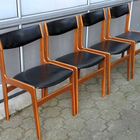4 Stk boomerang spisestue stole i massiv teak model 370 Fra Slagelse møbelfabrik Design Alfred Christensen med skai i super kvalitet