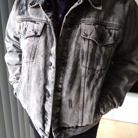 Hættetrøje/jakke - FSBN, L, lys grå - lidt peeling på ærmer