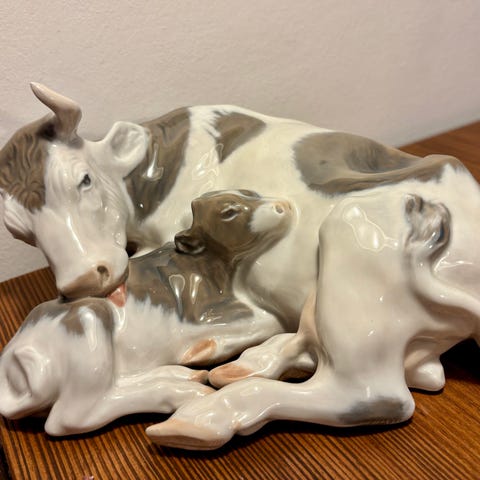 Royal Copenhagen Stor liggende ko med kalv nr. 800