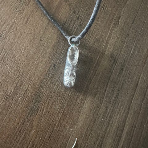 Dette smykke af klar bjergkrystal og læder er til at sætte i buksestroppen.