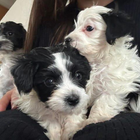 Hvalpe af blandingsrace hunde i forskellige farver. Hvalpene på billederne viser både lysebrune og mørkt tigrede farver. De opholder sig indendørs sammen med deres mor og ligger på hundekurve og tæpper. Egner sig som familie- eller selskabshunde afhængigt af købers behov og træning. Yderligere oplysninger om alder, køn, størrelse som voksen, sundhed og eventuelle vaccinationer bør aftales direkte med sælger.