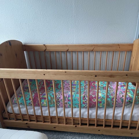 Hjemmebygget ekstra stor tremmeseng.