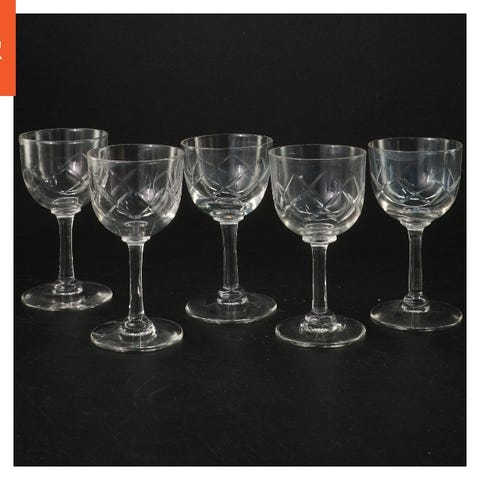 Klassiske, tunge krystalglas med smuk diamantslibning, facetterede stilke og stjerneslebet bund, den type kvalitet og håndværk man sjældent ser i nyere glas.