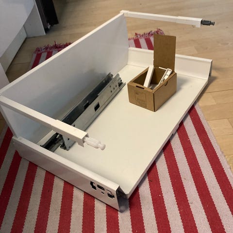 1 stk indvendig skuffe (7,8 cm høj) også med mål på 40x37. Nypris 170 kr.