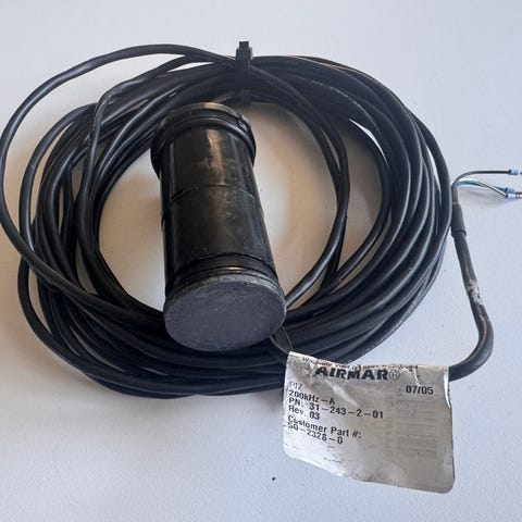 Japan Radio Company Model 2025 ekkolod til båd. Ekkoloddet er et ældre, analogt instrument med stor rund dybdemålerskive på fronten og flere betjeningsknapper til justering af signal og indstillinger. På typeskiltet fremgår modelbetegnelsen Echo Sounder Model 2025 samt oplysninger om transmissionsfrekvens og strømforsyning (24 V DC). Enheden er udført i et robust kabinet, egnet til montering ombord på fartøjer til måling af vanddybde og registrering af bundforhold. Velegnet som navigationshjælpemiddel eller reservedel til ældre marineinstallationer.
