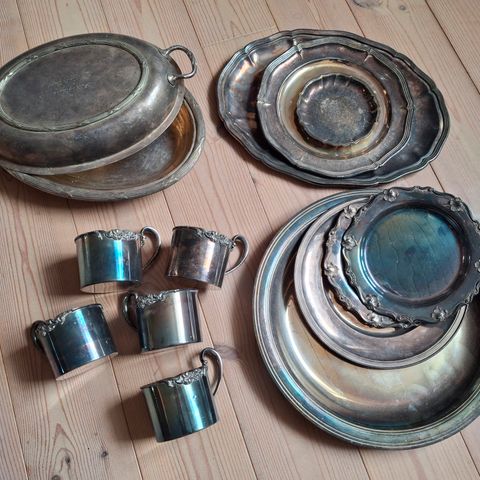 Sølv plet blondekant bølgekant, Sølvplet, 1930 år gl., 20 og 25cm diameter gamle sølvplet fade