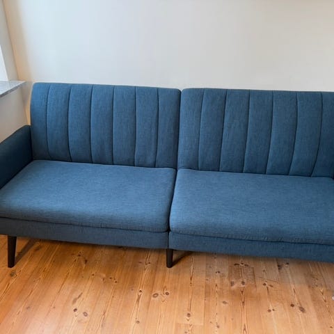 Kan bruges både som sofa og seng. Den er i god stand og fungerer som den skal.