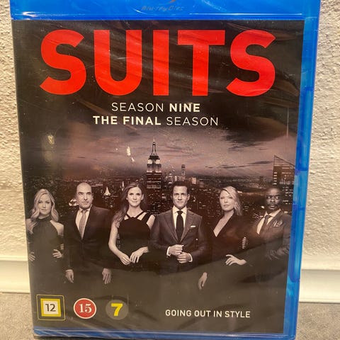 Suits The Complete Series 1-9 Blu-ray boks. Indeholder alle episoder fra sæson 1 til 9 af tv-serien Suits samlet i én Blu-ray samling. Serien er tekstet og aldersmærket efter standard europæisk klassificering, som angivet på omslaget. Velegnet til afspilning på Blu-ray-afspillere, der understøtter regionen angivet på coveret.