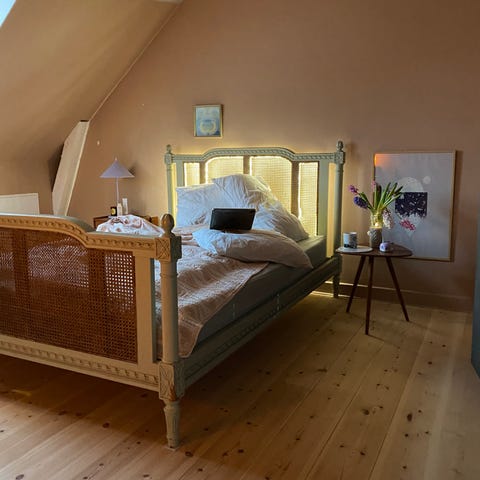 Gorgeous bed that fits 140x200 mattress (I am also selling in another post). Been in the family since 1930s.