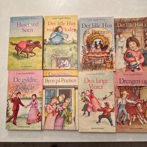 7 af de skønne bøger - fra TV serien : Det lille hus på prærien, - der stadig er værd at læse og er rigtigt gode som oplæsning - alle med blødt bind :