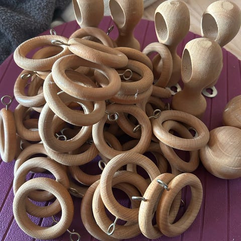 10 stk gardinringe i træ, natur.