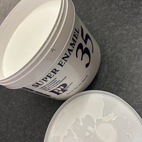 Har 3 liter graubraun vindues maling åbnet