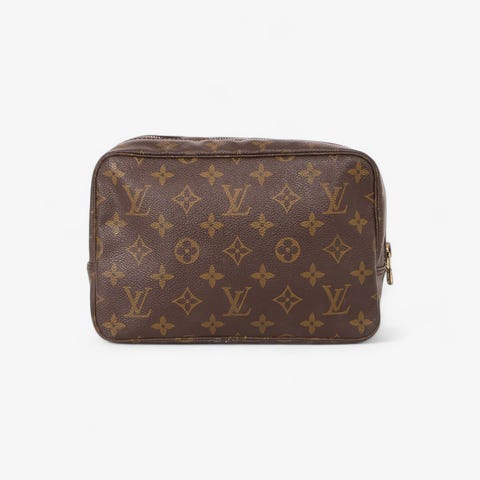 Louis Vuitton Toiletry Pouch i ikonisk Monogram Canvas. En tidløs og super anvendelig LV-classic, der fungerer perfekt som toilettaske i weekender og på rejser, men også som clutch/organizer i en større taske. Den rene, minimalistiske form gør den let at style, og monogram-canvas er kendt for sin slidstyrke og for at holde sig flot over tid.