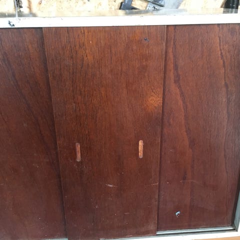 Charmerende antikt / vintage dukkeskab i træ.