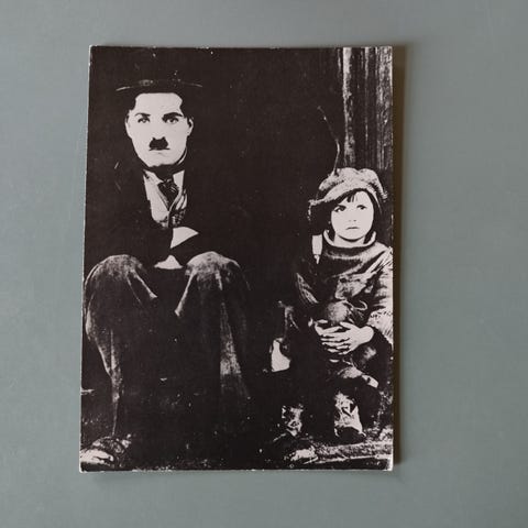 Spansk postkort : Charlie Chaplin og Jackie Coogan i filmen "The Kid" 1921.
