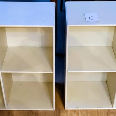 B. Modul med låge i den ene side og hylder i den anden side. Mål: 47 x 69 x 38 cm. Pris: 1300 kr.