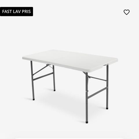 Sammenklappeligt rektangulært bord i grå plast med metalstel. Bordet kan foldes sammen for nem opbevaring og transport. Egnet som ekstra bord til fx arrangementer, hobbybrug eller midlertidige arbejdspladser. Overfladen er let at tørre af og vedligeholde, og stellet giver stabil støtte under brug.