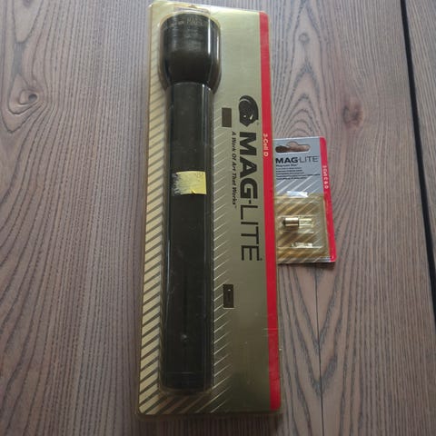 Mag-Lite lommelygte i sort. Klassisk stavformet model i metal med knap på siden af skaftet. Egnet til generel belysning, fx i hjemmet, bilen eller på ture, hvor der er behov for en robust håndholdt lyskilde.
