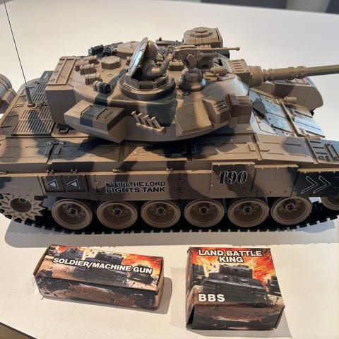 Sælger mine to fede fjernstyrede battle tanks fra Morfars.dk – perfekt til episke kampe hjemme i stuen eller haven!