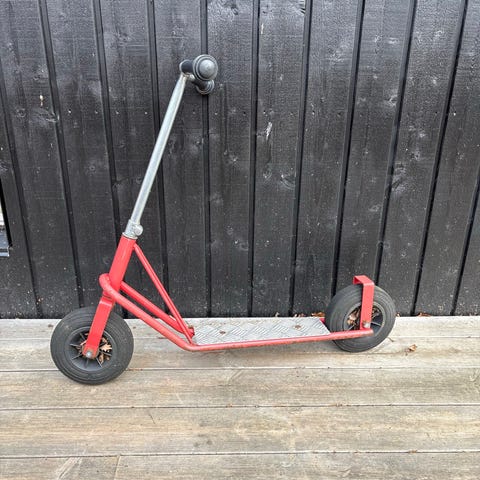 Egnet til brug som trick- eller fritidsløbehjul. Farvekombination med blå styr og flerfarvet deck og forgaffel.