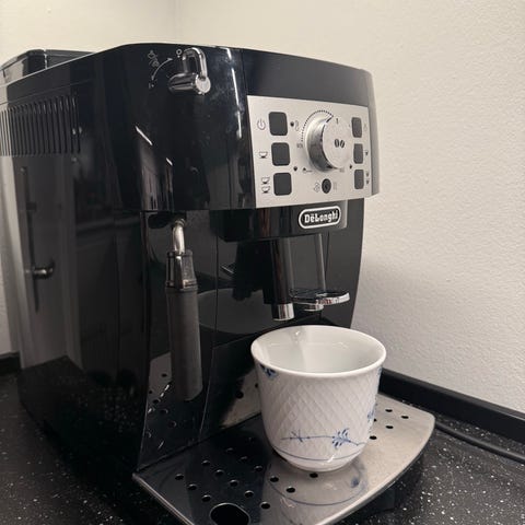 Délonghi kaffemaskine med kværn til hele bønner med mælkeskummer sælges