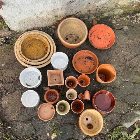 Sæt med terracotta urtepotter og underskåle i forskellige størrelser. Flere former og højder, både glatte og dekorerede modeller. Egnet til indendørs og udendørs brug til blomster, krydderurter og andre planter. Leveres som blandet parti med både potter og tilhørende underskåle i natur terracottafarve samt enkelte i lys lerfarve.. samlet 150kr