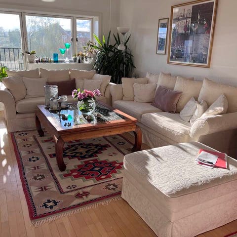 Selling our ILVA Reggio 3-seater sofa in light fabric.