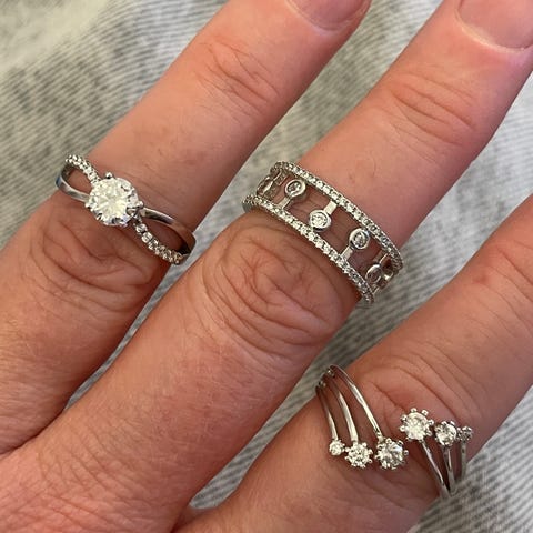 Flotte sølv ringe 925s med zirkoniasten. Den ene er en spin ring og den anden er en APM Monaco ring. En ring 250kr begge for 400kr