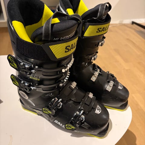 Salomon S/Pro 90 skistøvler i sort. Støvlerne har flex 90 og er markeret med størrelsen 24/24.5 samt sållængde 284 mm. Modellen er angivet som Wide Last, hvilket giver ekstra plads i forfoden. Ydersålen har udskiftelige sålindsatser med skridsikkert mønster. Inderstøvlen er polstret for komfort og varme. Velegnet som alpinstøvler til pistekørsel.