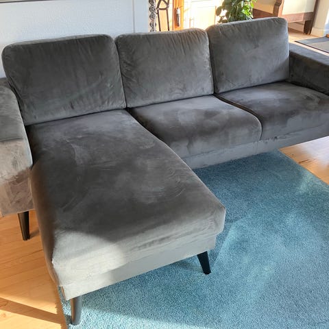 - Velour hjørnesofa købt fra Unoliving