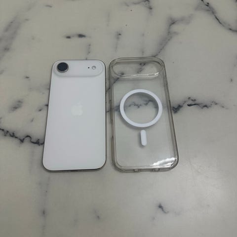 Apple iPhone 17 Air smartphone med 256 GB intern hukommelse. Enheden fremstår i sort farve. Telefonen har stor skærm på forsiden og kamerasystem på bagsiden. Egnet til almindelig brug som opkald, beskeder, internet, apps og medielagring med den angivne lagerkapacitet på 256 GB.